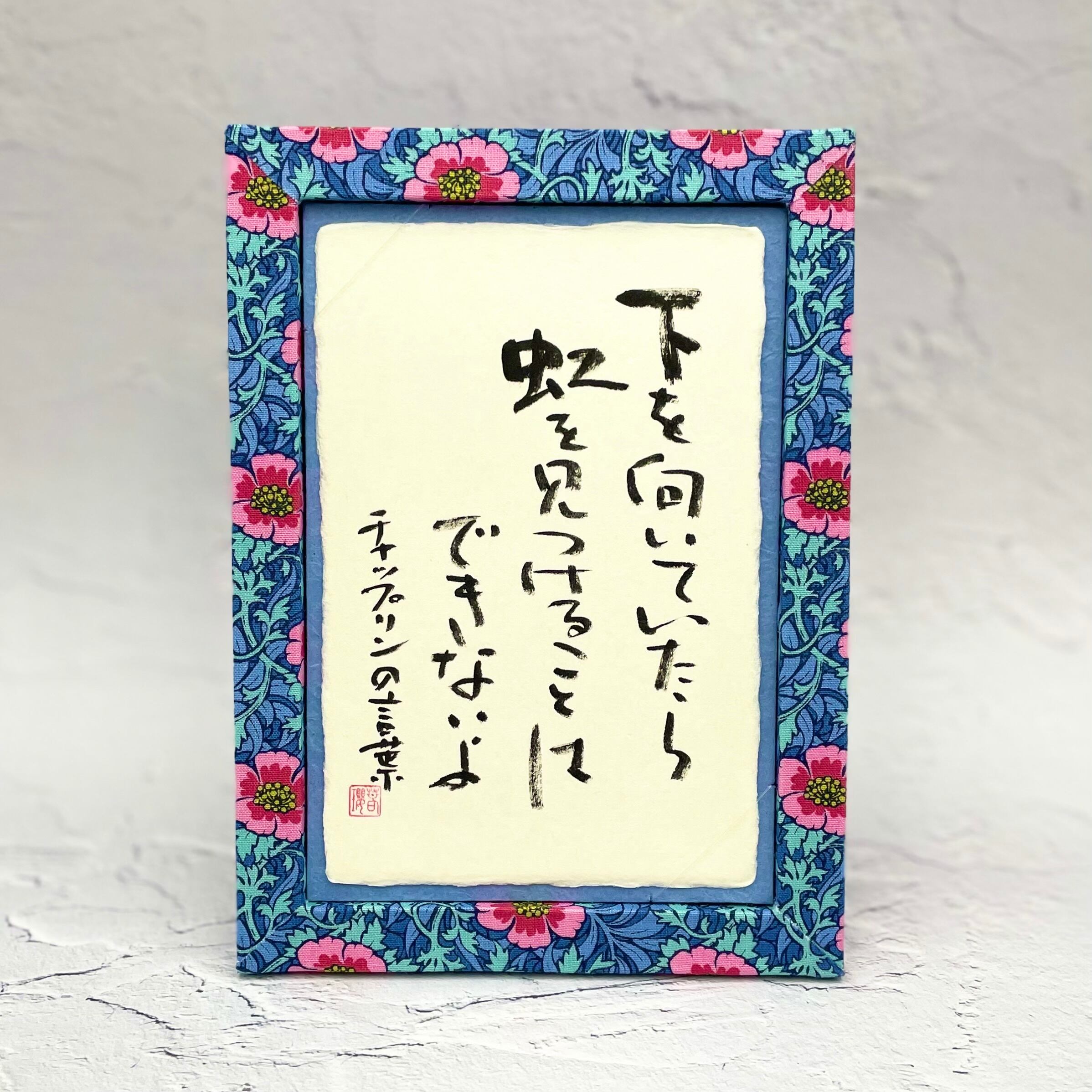 耳つき手すき和紙のハガキに春瓔が筆書きしました